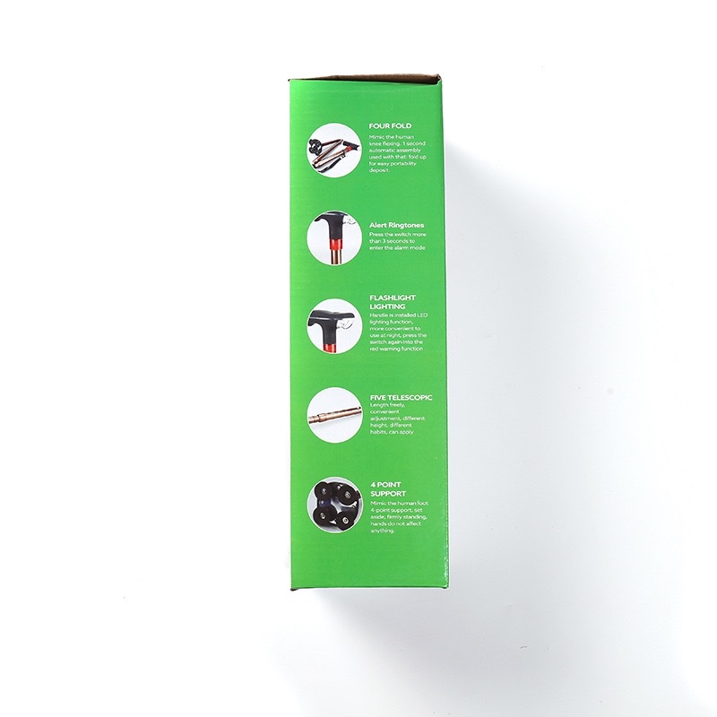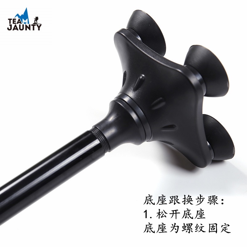 Outdoor Elderly Walking Stick Five Sections Folding Telescopic Walking Stick With Armrest Four Corner Base Elderly Non-Slip Pole